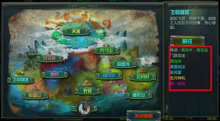 一般说战斗时间太长的玩家都不是选的飞羽,如上图红框所示,飞羽的门派特点是高命中,高攻击。用上青雷剑法和疾风掌的绝招,杀怪基本都是秒。