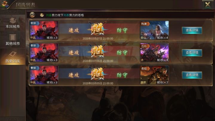 第一问题,参加了三次国战,为啥只有一次的奖励?你们再看看下面,只有一次奖励?谁知道啥原因第二个问题,在看看下面防守活动,啥都没有?是BUG嘛第三个问题,三个国家,看看你们设计的下面这个东西我想抽其他国家的就不行嘛?建议你既然设定是本势力的,就一个势力只能玩一个势力的将,列传其他势力只收集,三个国家共享将只有群雄,不然你在看看下面,这么多国家你的列传要猴年马月才能做完?一个将+1就是新列传