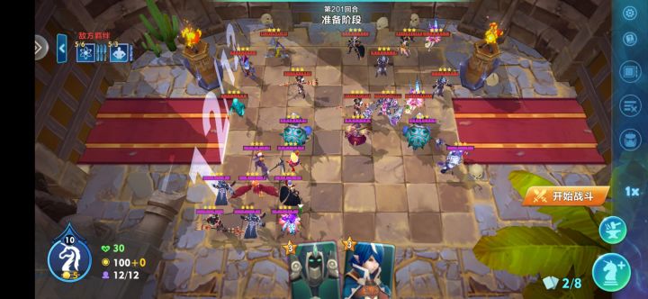 前面无脑一直到360层,360开始偶尔调换阵容,420到450感觉最难,每2-3关就要调换阵容。450后突然柳暗花明,全是无脑近战,一直到540。540SL了好几次,电脑有两个海盗船长加狂暴羁绊,如果两个海盗船长有一个开出技能就得重来。之后到570,直接极限了,6射手羁绊加20W血龙龟,4个2000多攻的舞娘
