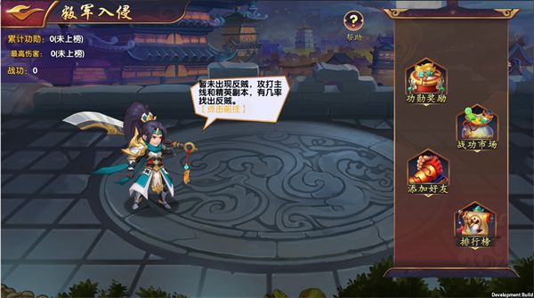 天下大乱盗贼蜂起,平定贼寇建立战功,玩家在游戏中攻打副本的时候,就会出现叛军boss,只有击杀掉boss之后才能获取到相应的奖励哦!那么如何快速的击杀掉呢?接下来小编就来和大家详细的讲解一下攻打技巧。荡寇志玩法:1、38级开启玩法后,挑战普通副本和精英副本都有概率发现反贼,可单独或邀请好友一起围剿反贼。2、每次围剿反贼都会获得功勋值,总伤害越高功勋值越多,武将每突破+1对反贼的伤害提升2.5