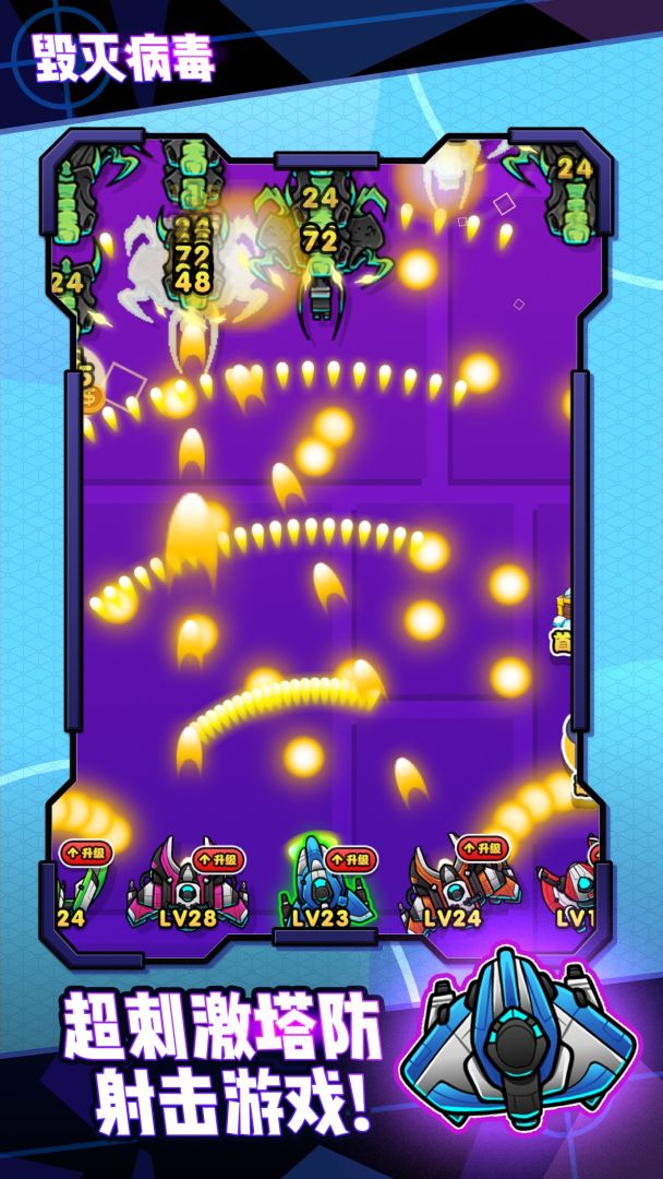 全屏弹幕,挂机收益,快来消灭病毒大军们!