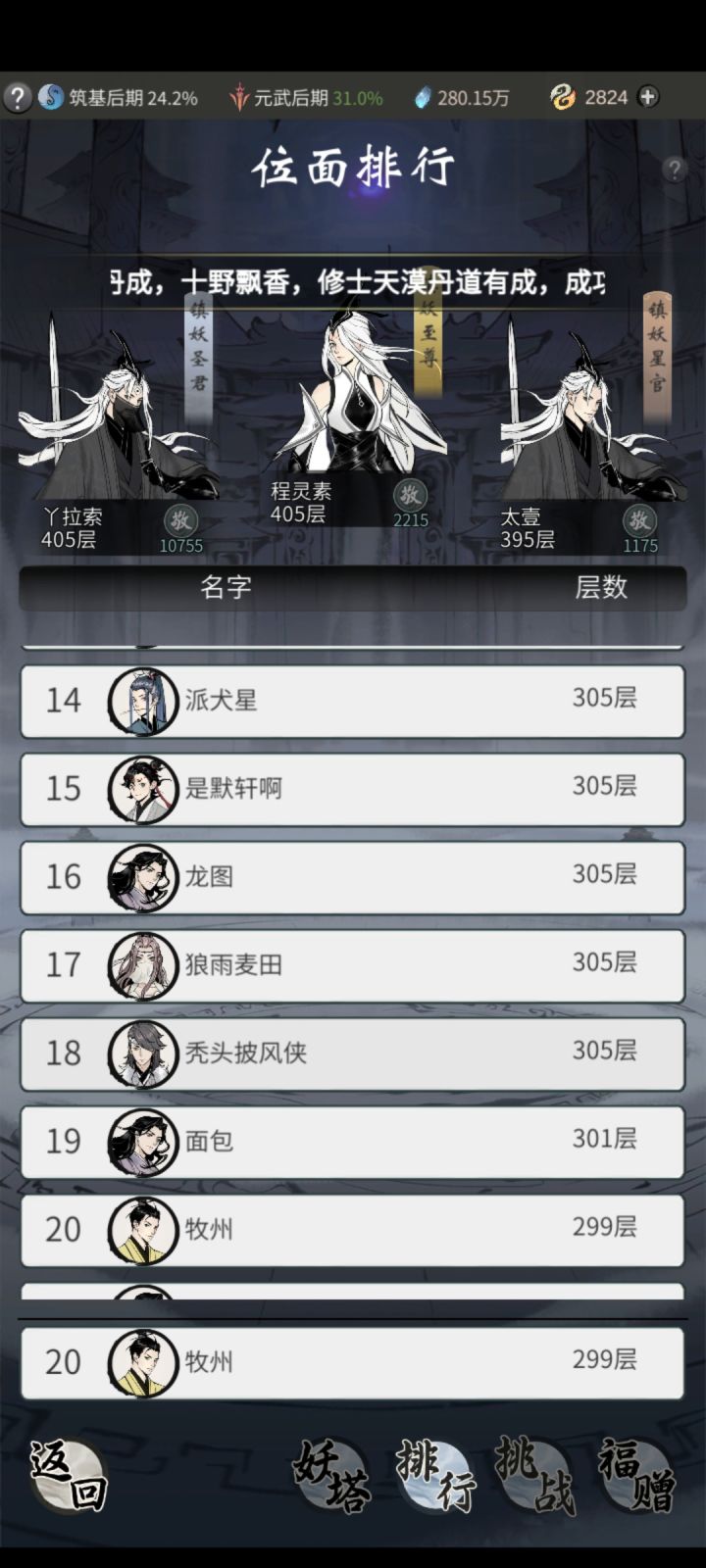 另外,我当晚在异界频道庆祝的时候有法修大佬表示3900过的登仙台。也许是玩笑,但作为过来人,我倾向于认为是可以做到的,如果有以4000万左右战力过登仙台的大手子看到本文,希望留言交流一下。