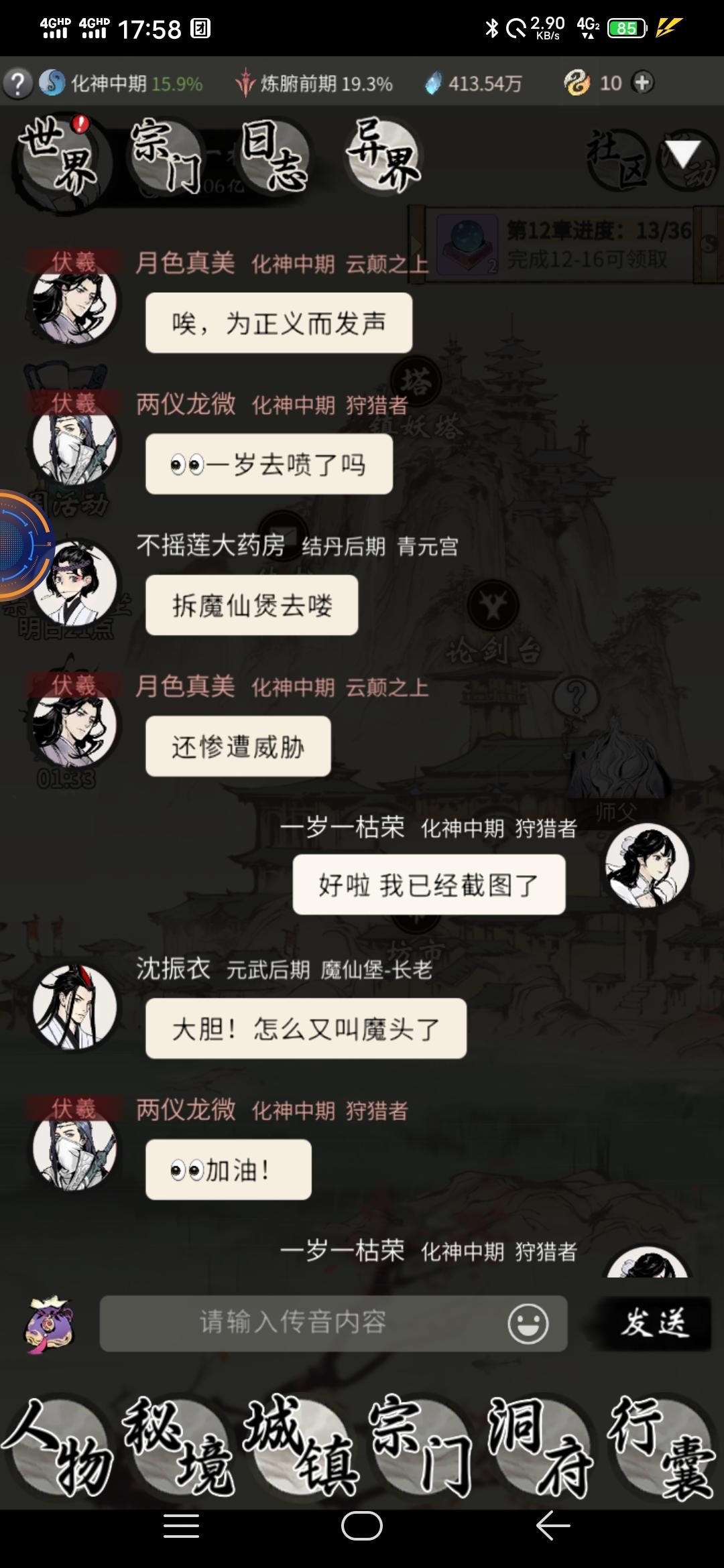 已半截入土,看图这游戏就是个挂机游戏,和想不想,玄元不一样(想不想和玄元全部已金仙,肝都硬化了)这俩游戏你就是挂一百年登上去还是和以前一样只是多了经验和年数,其他没啥变化,而一念随着挂机你挂法修会给你加真元,挂体修加血,中间我a了一段时间,再次上线加了大约5000万的真元,a的时候是1000万战力,再次上线直接变两亿战力,然后就是满级号屠杀新手村boss的过程,过程惨烈(略),真的很惊讶,这是玩