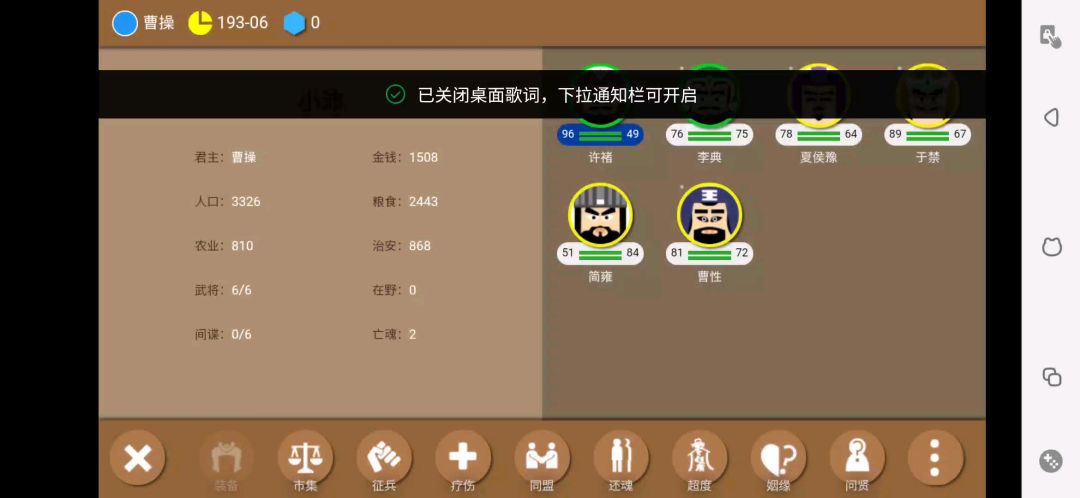 一、飞地:我们在进攻敌人城池时,可撤退至该城附近的空城内,空城就归你所属。如曹老师就能如此法第一回合占据大量城池。 二、卡马:我们可给将领购买如视频为例的装备(最后两栏为马),再将其投降给低仁德的敌方君主(最好为董卓)。人机每回合买一次装备,有概率额外买马,这时派人侦查挖角即可。 三、(敌方)满血投降:在我们进攻只有一个武将的敌方城池时,我们先点击其头像,再按全部待机,这时我们可以看到敌方的行动面板,我们只需在这一瞬间点到投降(最好同时点多次),敌人就会满血投降。