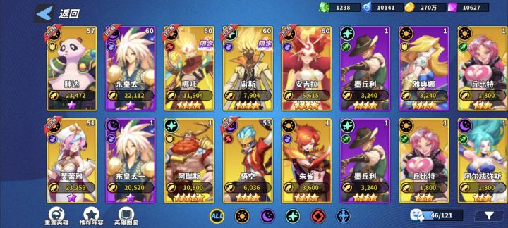 5、阿尔忒弥斯,系统推荐赠送英雄之一,主打一个量大管饱,有减速,推图PK前期升起来用也很爽