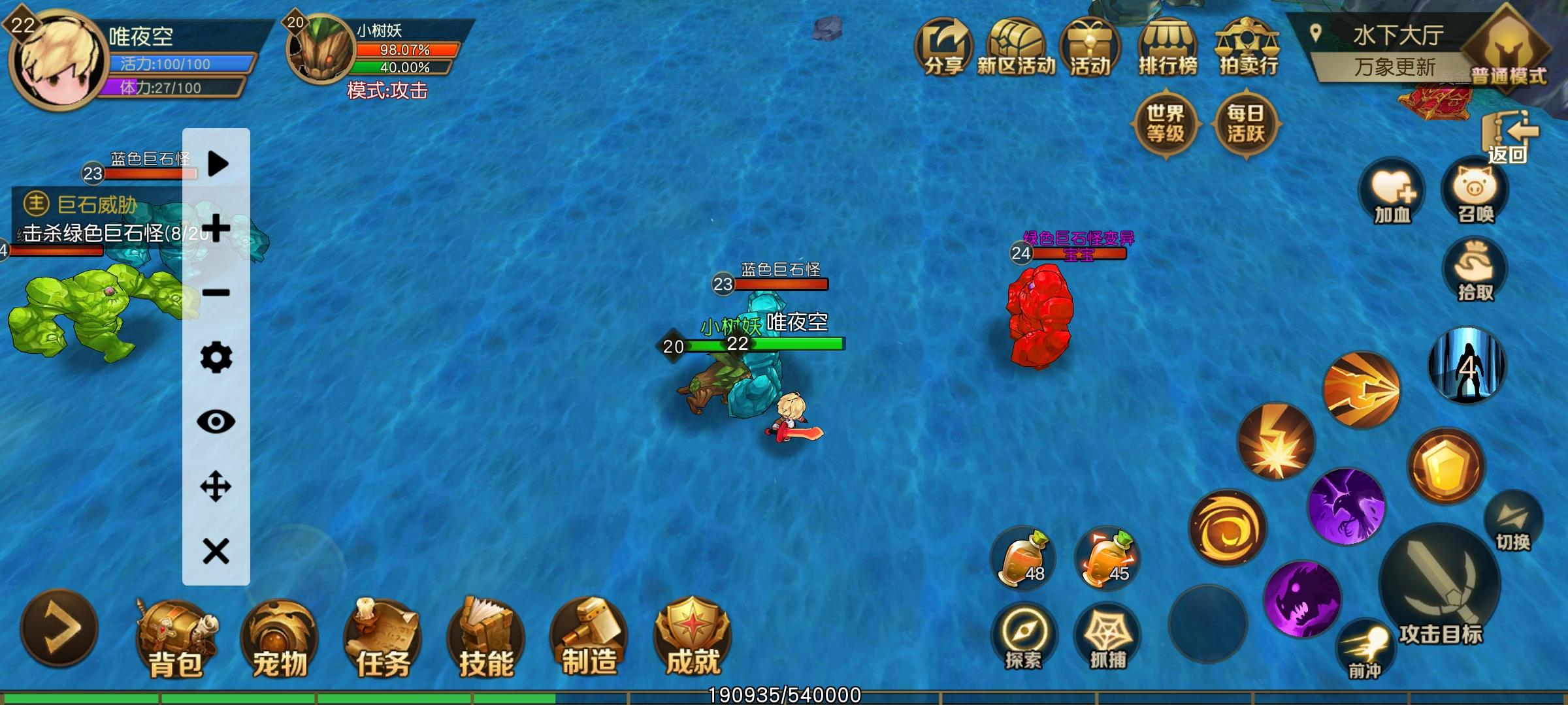 我是白嫖党,墙裂安利这款游戏。免费游戏中最像暗黑和传奇的了。游戏没有该死的体力限制,所有物品都可以通过刷boss和制作出。1.游戏里活力是用来在野区地图搜索用的,建议在宝箱附近搜索(可以出宠物蛋或材料)、体力是用来抓宝宝或野怪的,每12点和零点一次恢复60点,其他时间缓慢恢复每次一点。体力不够时,抓怪会自动消耗绳索。绳索可以在拍卖行花金币在宠物类购买,或者在制造栏下的炼金里用地图碎片每10个合成