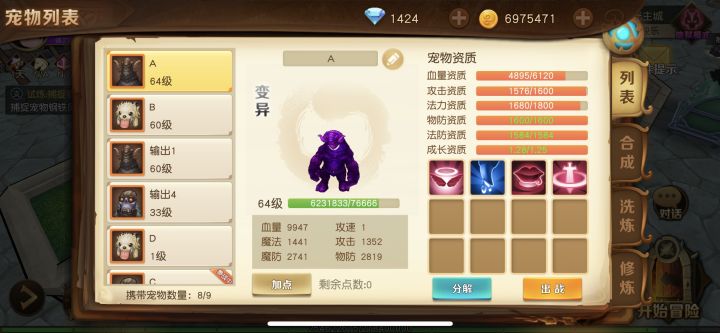 技能大致可以分为抗性类、攻击类、魔法攻击类、增强类等。采用不同类型的技能书,宠物打上新技能的概率很高。1.首先随意捕捉自己喜欢的野生宠物。2.再用果子洗练,变成宝宝。金币多的话,继续洗,洗成变异。用大果子,继续洗。直到获得各种成长值不错的宠物。3.打书我试验过来,不管洗成的宝宝几技能,最终打书,只能4技能。这就是满技能了。如图,这个资质可以用了。★打书技巧:不同类型宝宝,技能不一样,首