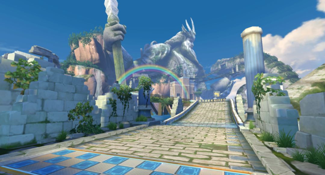 资讯大爆料,菲菲来报道! 哈喽小伙伴们~今天菲菲要给大家爆料的是【海神圣殿】赛道。 哈哈哈,是不是听起来就有种清神透亮的感觉~快来看看海神的圣殿是什么样子吧! 映入眼帘的是海神威武高大的身躯,手举法杖,注视着世间。那一抹灿烂的彩虹,为这庄严肃穆的气氛平添一丝温情。 绿意盎然的木质廊桥旁种满了椰树,置身其中,仿佛海风阵阵拂来,带着咸咸的气息~像极了炎炎夏日的那杯橘子汽水。 穿过明亮舒适的海边公路,就