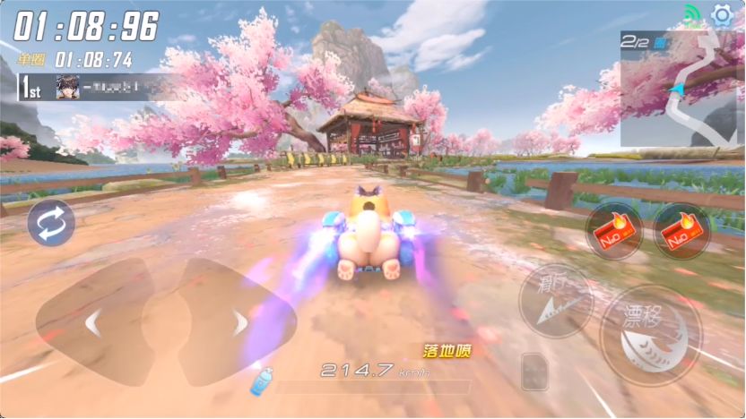 兄弟们,好久不见,老司机我甚是想念。今天,老司机又为大家带来了精彩的赛道分析——「十里桃花」赛道。 赛道一览: “忽逢桃花林,夹岸数百步,中无杂树,芳草鲜美,落英缤纷。”用《桃花源记》中的语句来形容「十里桃花」的场景,老司机觉得再合适不过。「十里桃花」的赛道场景风格为中国风,不论是近景中的凉亭、竹桥,还是远景中的青山、薄烟,都自带水墨画般的诗情画意,让人仿佛置身于山水画间。热烈盛放的桃花加上漫天的