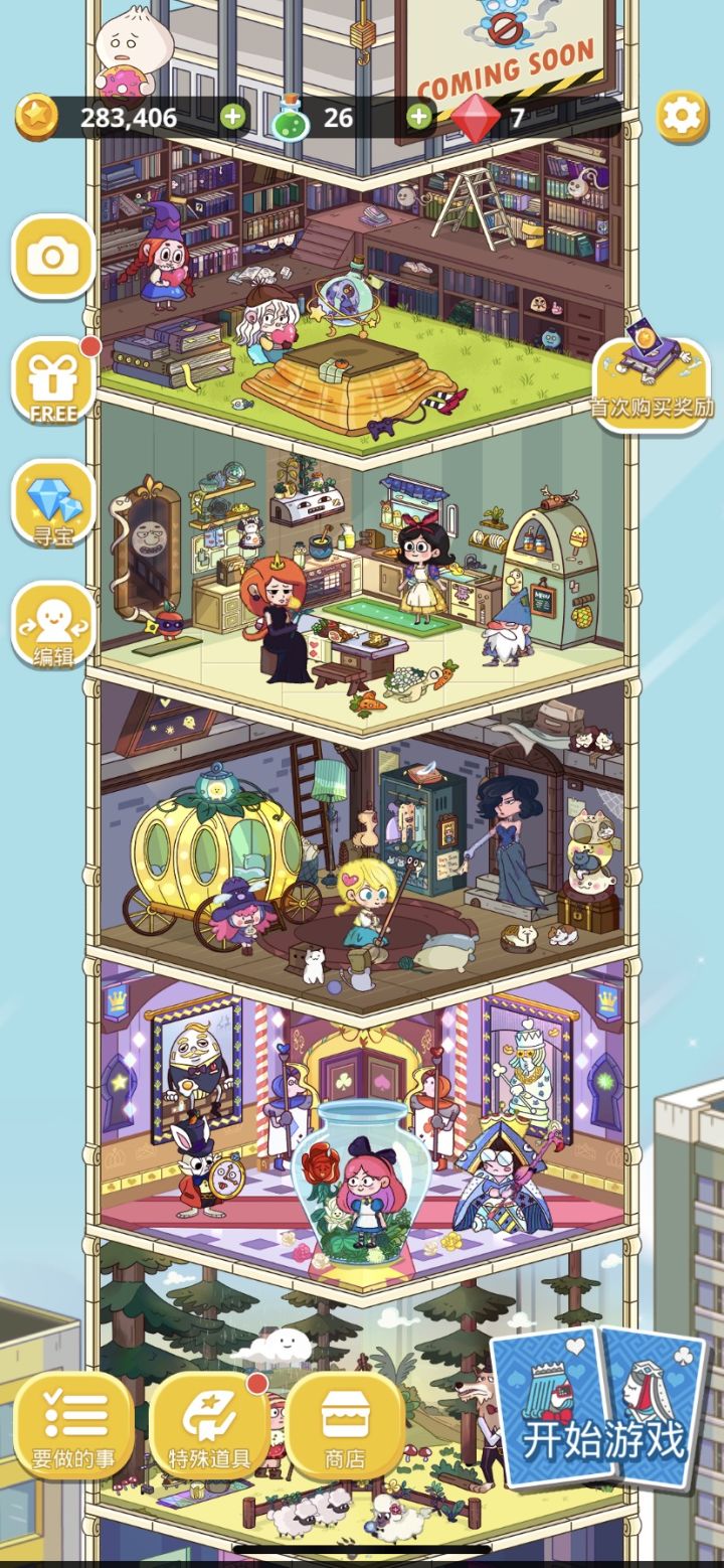 肝了三天 留下这两张图片 卸载了 玩法比较单一 游戏里面氪金的礼包都很贵 后面的关卡有炸弹之后拼手速 但是发牌的随机性也得花金币才可以过关 比起一般的卡牌游戏画风还是很喜欢的