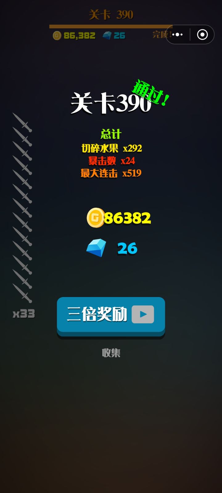 一分钟爆汁的飞刀切水果快乐 炸出满屏金币