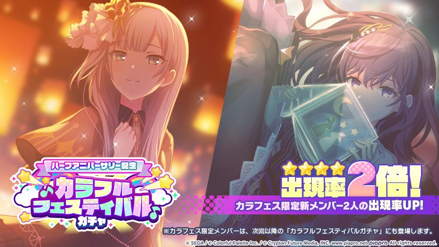 北京时间明天下午14时开始 半周年纪念Colorful Festival招募开启🌟 ★4成员的出现率提高2倍✨ ※详细信息请在游戏内查看 ※fes限定成员在本次招募结束后会有再次登场的可能 本次fes限定成员: ★4 宵崎奏 ★4 朝比奈真冬 #初音未来# #世界计划 多彩舞台# (已获得b站projectsekai资讯站授权) (左边的是新角色吗?好可爱啊(狗头)