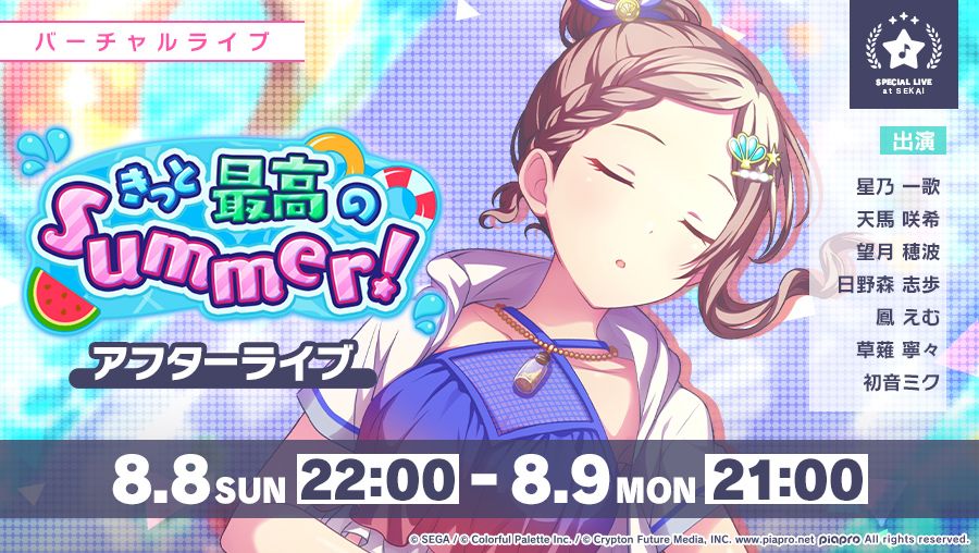 🌊第三十期活动『きっと最高のsummer!』(一定是最棒的夏日!) After Live 虚拟演唱会🎤 将于北京时间8月8日21时起开始✨ 虚拟商店也会销售新商品🎁 此外,参加该虚拟演唱会还可以获得表情贴纸✨敬请期待🌈 (已获得b站projectsekai资讯站授权)