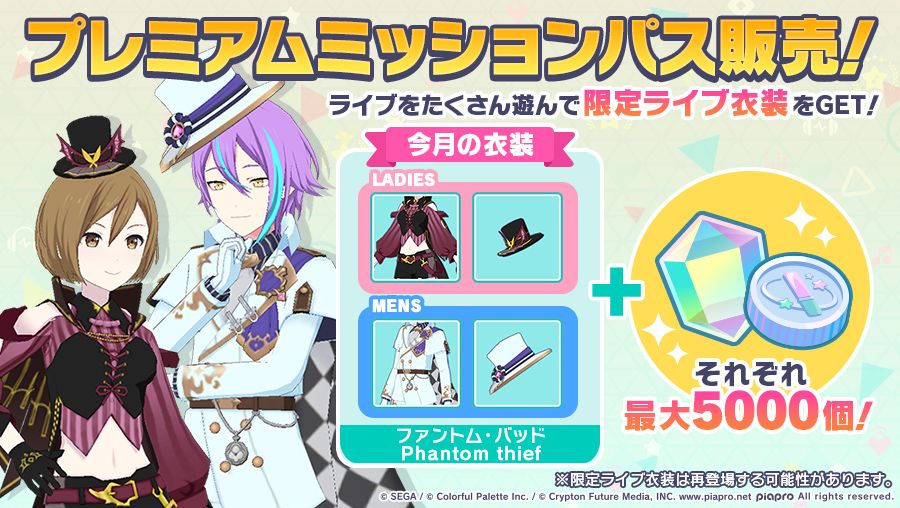 4月的「Premium Mission Pass(大月卡)」售卖中✨ 本月的LIVE服装采用自第2回服装征集活动「怪盗」篇中千寿さん和Doveさん的作品👗 此外,第7回世界计划服装征集活动开启🎉 服装征集主题为「睡衣」 第4回世界计划NEXT乐曲征集活动也已开启🎤 本次乐曲征集的主题是「Pop歌曲」 #初音未来# #世界计划 多彩舞台# (已获得b站projectsekai资讯站授权)