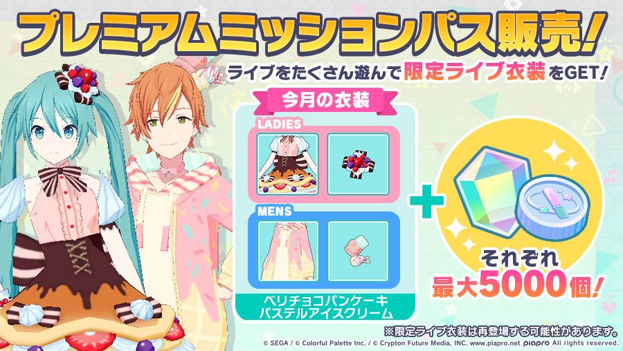2月的「Premium Mission Pass(大月卡)」售卖中✨ 本月的LIVE服装采用自第一次服装征集活动「甜品」篇中アザカさん和こむさん的作品👗 #初音未来# #世界计划 多彩舞台# 【消息转载自b站project sekai资讯站,已授权】