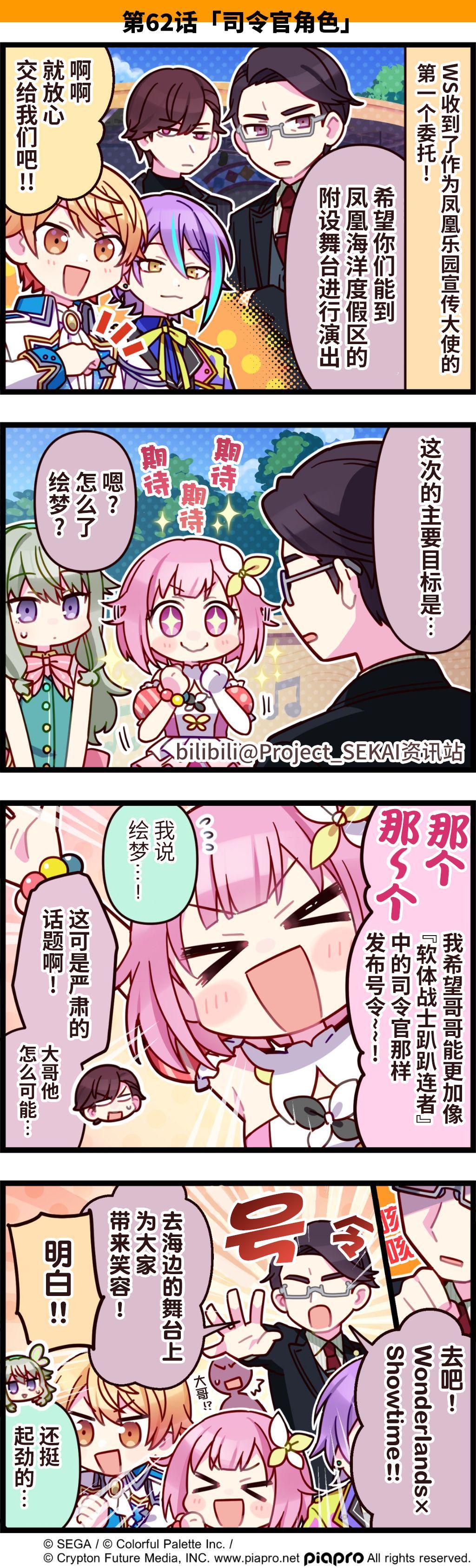 描绘《世界计划》日常的四格漫画公开✨ 第62话「司令官角色」 平时看似不苟言笑的大哥意外地相当放得开 翻译:Mizora@孤門Mizora_Nexusty 校对:星音@星音ゆめ 嵌字:伦琴@伦琴猫 (已获得b站projectsekai资讯站授权)