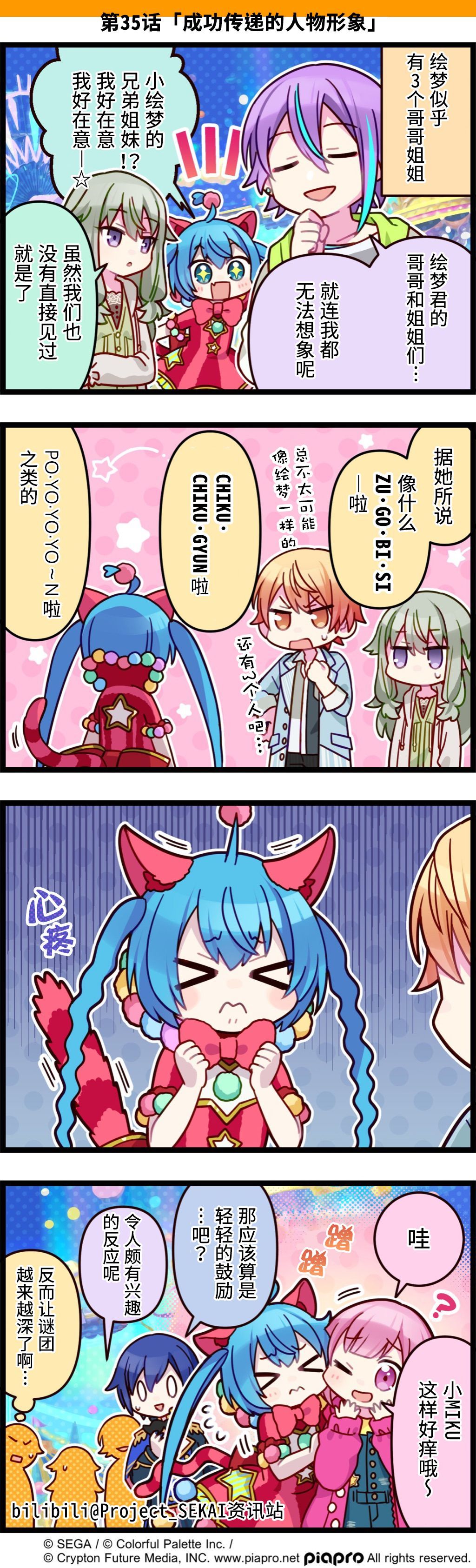描绘《世界计划》日常的四格漫画公开✨ 第35话「成功传递的人物形象」 电波相近而能够明白绘梦语的Miku Miku也在以自己的方式去为其他人打气呢 翻译:Mizora@孤門Mizora_Nexusty 校对:星音@邪栀星音 嵌字:HatsuneEvn@HatsuneEvn #世界计划 多彩舞台##SEKAI四格漫画##ワンダーランズ×ショウタイム##鳳えむ##天馬司##初音未来# (已获得b站p