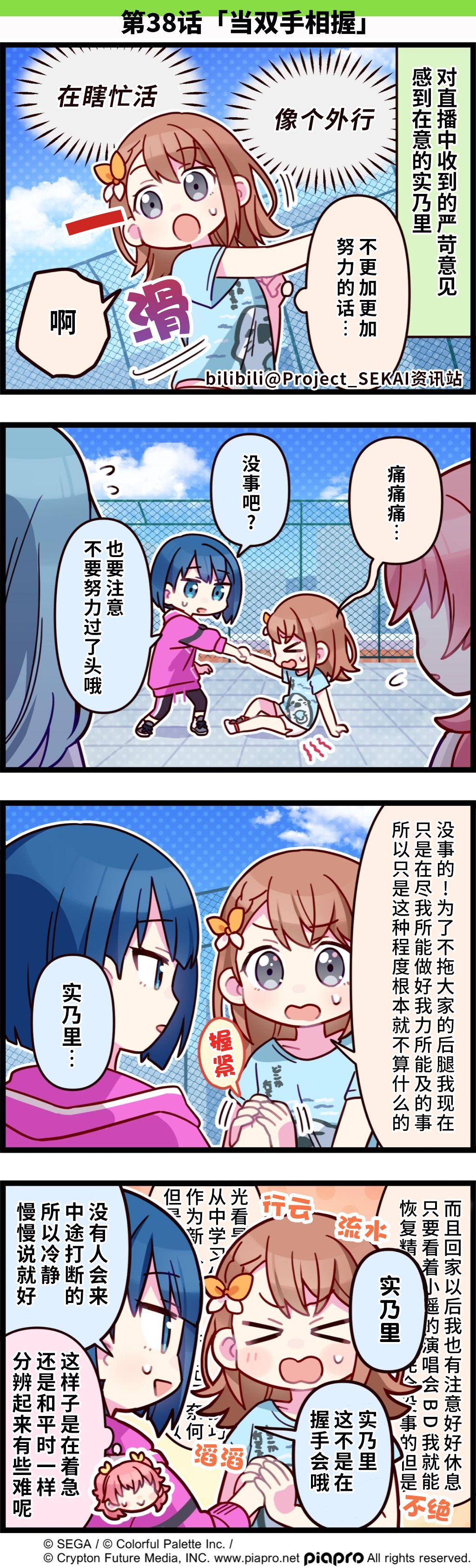 描绘《世界计划》日常的四格漫画公开✨ 第38话【当双手相握】 不用着急,我们的小实乃里,一步一个脚印踏踏实实前进就好。 当天使的羽翼丰满之时,你必将成为舞台上最闪耀的那颗星!!! 🍀 🍀 🍀 🍀 🍀 🍀 🍀 🍀 🍀 🍀 🍀 🍀 🍀 🍀 翻译:Mizora @孤門Mizora_Nexusty 校对:弃子 @棄子 嵌字:伦琴 @伦琴猫 #世界计划 多彩舞台# #SEKAI四格漫画# #花里实乃里# #