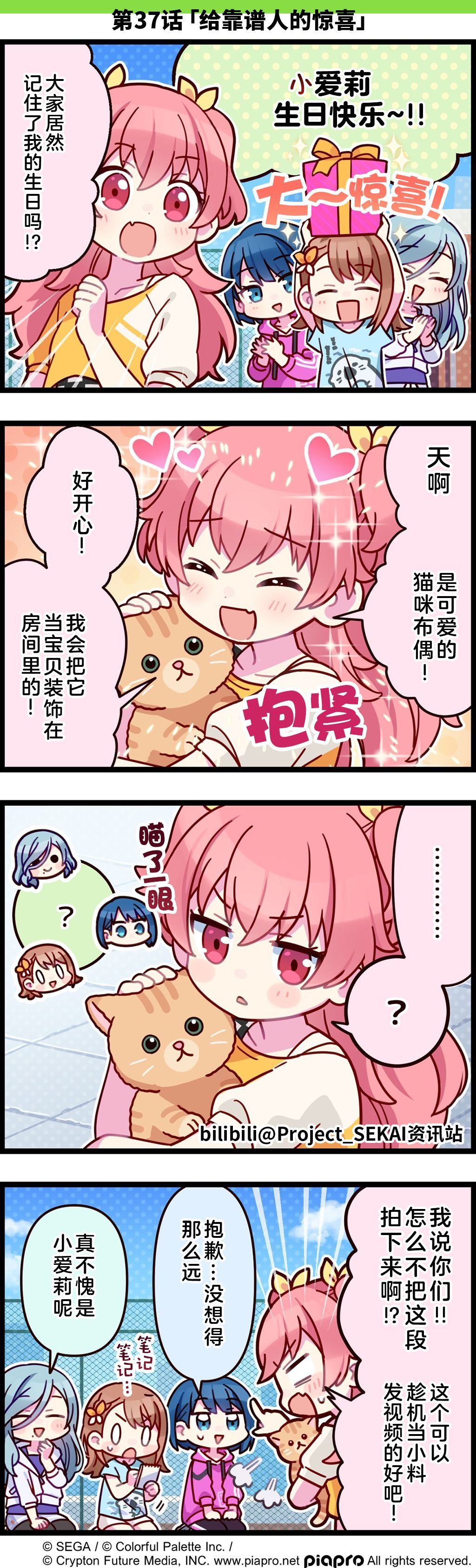 描绘《世界计划》日常的四格漫画公开✨ 第37话「给靠谱人的惊喜 ] 小爱莉生日快乐 能够时刻注意捕捉卖点也是作为成熟偶像的证明呢 🐈 🐈 🐈 🐈 🐈 🐈 🐈 🐈 🐈 🐈 🐈 🐈 🐈 🐈 🐈 🐈 🐈 🐈 翻译:L 校对:哈米赛 嵌字:L #世界计划 多彩舞台##SEKAI四格漫画##桃井爱莉##MORE MORE JUMP!# (已获得b站projectsekai资讯站授权)