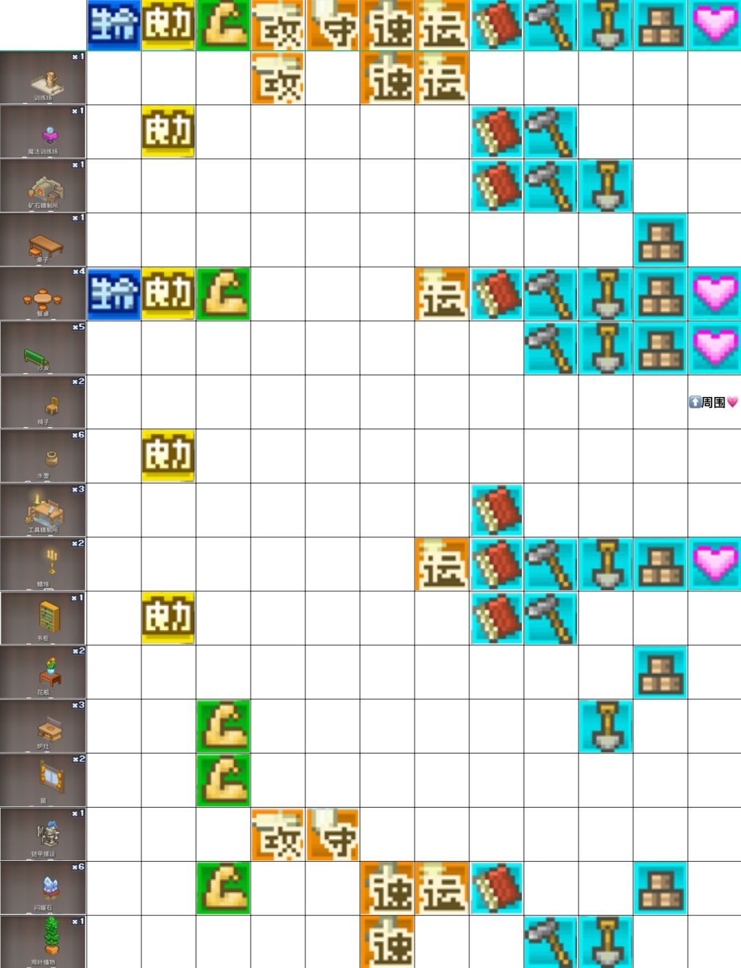 一城参考布局 每个店都靠近所需材料 节约时间 其他房子可以随便建 后期把仓库换成高级的就够用了 更新:附了几张tb大佬的布局图 可以参考~ #王都创世录