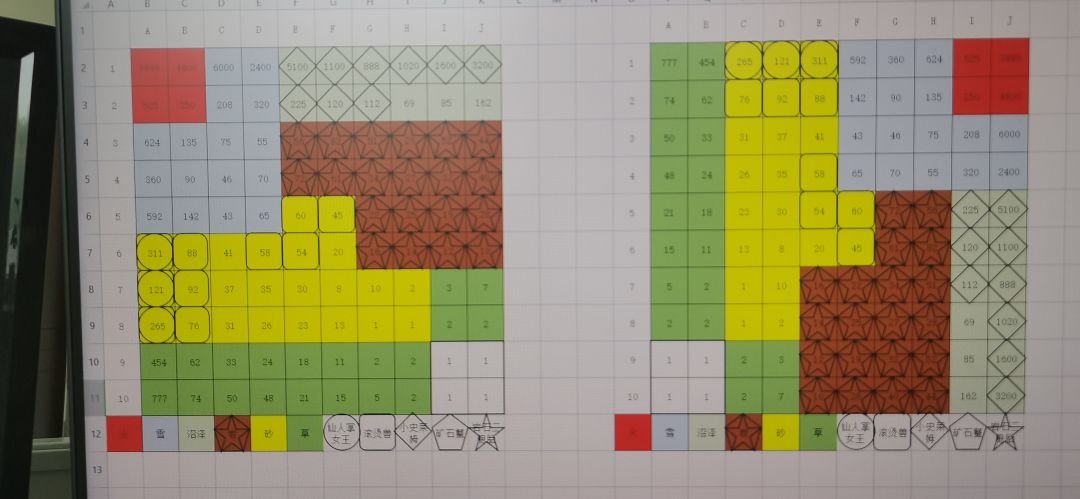第十一周周常2024.12.1-12.7 图片上的数字是地点等级,也就是派遣时下方显示的等级,空白处是初始主城的位置,两张图片分别是两个视角 本周的土鱼在11级以上的整地出现 整地就是城里那种普通黄土地,不是挖秃了那种,野外铺路之后拆掉就是那种地形