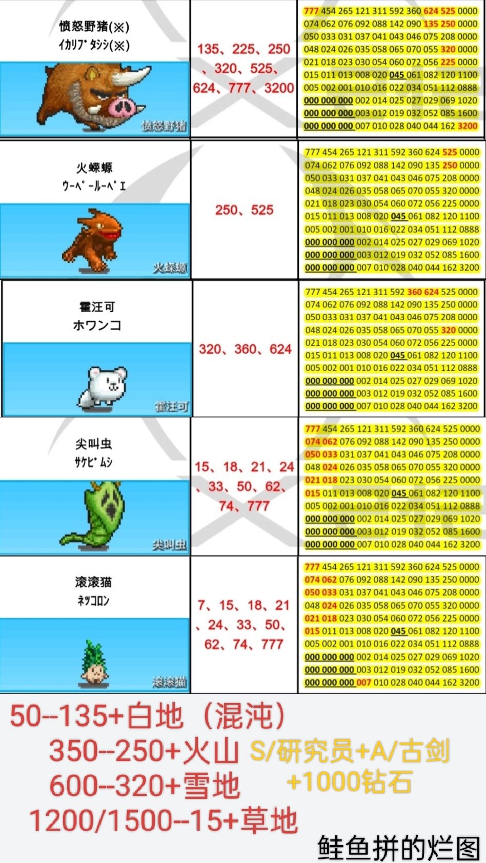 本周周常刷怪地点(4.13--4.19)