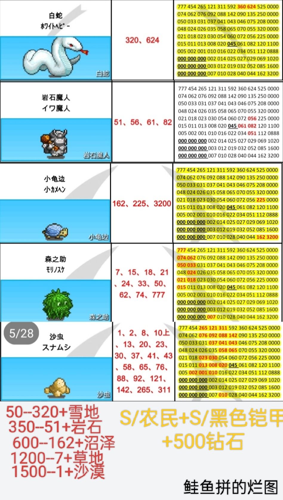 本周周常刷怪地点(4.27--5.3)