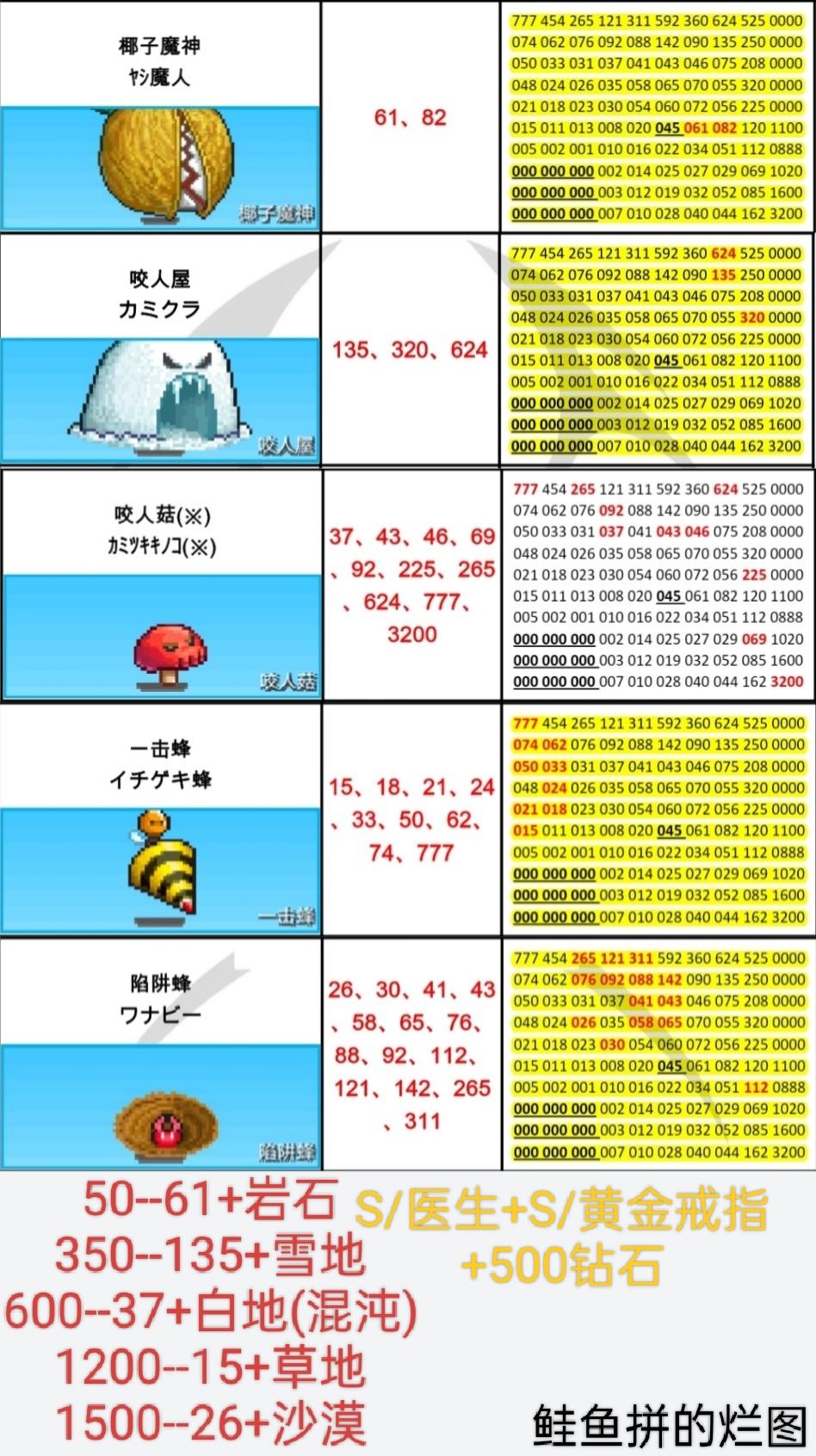 本周周常刷怪地点(3.9--3.15)