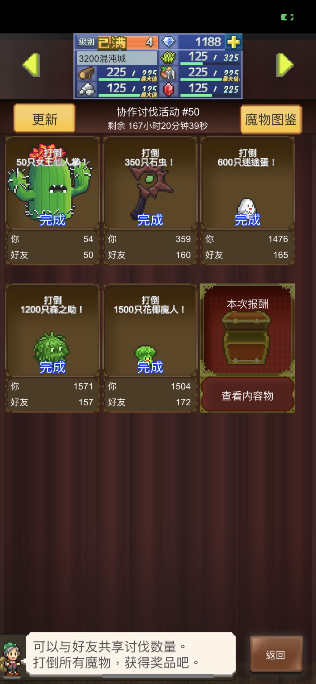 群号612168215,里面大佬多,说话又好听。下面进入正题。 以下内容,80级以上的佬就别看了,免得悲伤! 在主城的边缘1级区域,建一个火把,最远距离填海1个,然后修桥。之后撤掉火把,这块土地会在野外,可以进行派遣。只出波克和走路花。然后,活死人出动。历史3分钟1500波克完成,此方法同样适用于走路花。 最后,方法来源于群内玛卡巴卡大佬!!