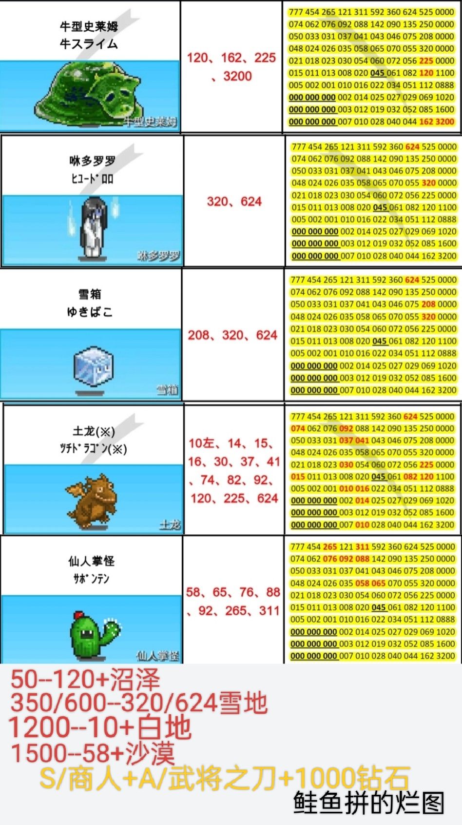 本周周常刷怪地点(3.16--3.22)