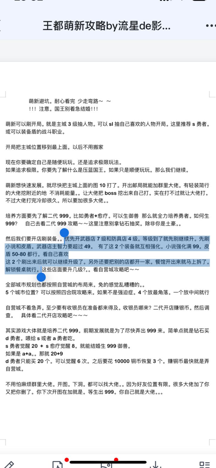 如果你是刚下载这个游戏的萌新推荐仔细看完这个帖子里的所有图片(尤其p2,p3):https://www.taptap.cn/moment/594586749825452409?utm_medium=share&utm_source=copy&share_id=849C27FFB3A2—————看完了吗,接下来正片开始————这个游戏最重要就是生二代999,所以反推:1️⃣要想持续搞999就得