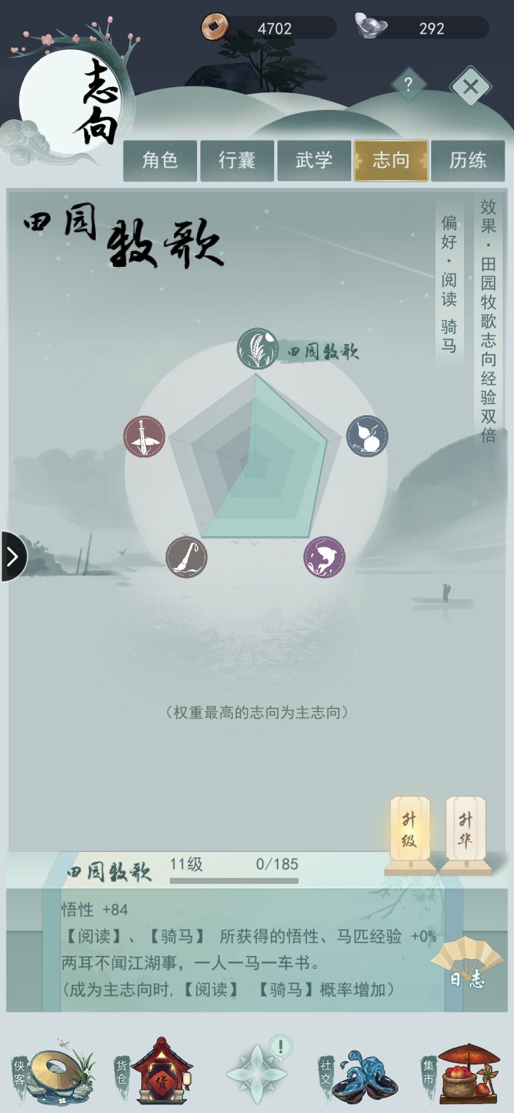 一、渡劫:打坐可获取修为,当修为满足后即可进行渡劫,渡劫有一定成功率,失败时会扣除部分修为,但通过丹药可提升渡劫成功率,顺利渡劫后则可提升境界等级,开放更多功能玩法。二、淬体:通过神游获得气力值后可淬体提升肉体等级,肉体等级越高,角色防御属性越强,战斗时概率获得的‘金钟罩’护盾值越高。三、灵脉:灵脉等级越高产生灵气的速率越快,可储存的灵气上限也越高,灵气可以用来提升灵根及仙法等级,使仙法所加属