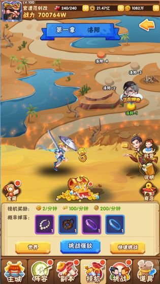 今天就给大家介绍一下我们的 挂机玩法,养老护肝不是说说而已哦!挂机主要产出佩饰相关的 养成道具,以及 角色经验、铜钱、元宝等资源。资源最多可存储12小时,不上线也能轻松升级~也可以使用 快速挂机券,一张即可获得60分钟的当前关卡章节收益。 在挂机宝藏里,可以得到必掉的元宝,除此之外,还可以随机刷新到很多珍稀物品~ 挂机副本有单独的剧情,也可以理解为主线剧情的番外篇。当你前往不同的地点,遇到我