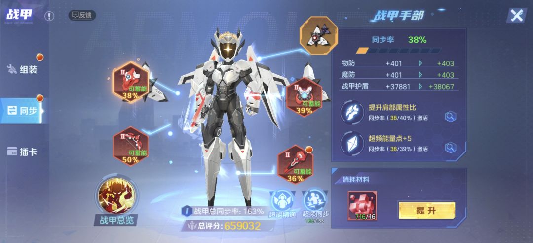 小伙伴们大家好,新区战甲系统开放意味着游戏竞技进入了全新的阶段,战甲的竞技优势巨大因此战甲养成十分重要,今天跟大家讲讲新区战甲同步提升建议和资源获取整合,直接讲重点。 战甲四个部件,每个部件同步率提升每5级会有一次小突破。同步率的提升过程中运气好会有跳点的可能性,一般提升一次只有一个格子,但是过程中会有跳点2个格子、4个格子或者完美跳点直接升级的情况出现,虽说跳点是随机的,但是有技巧可以最大程度的
