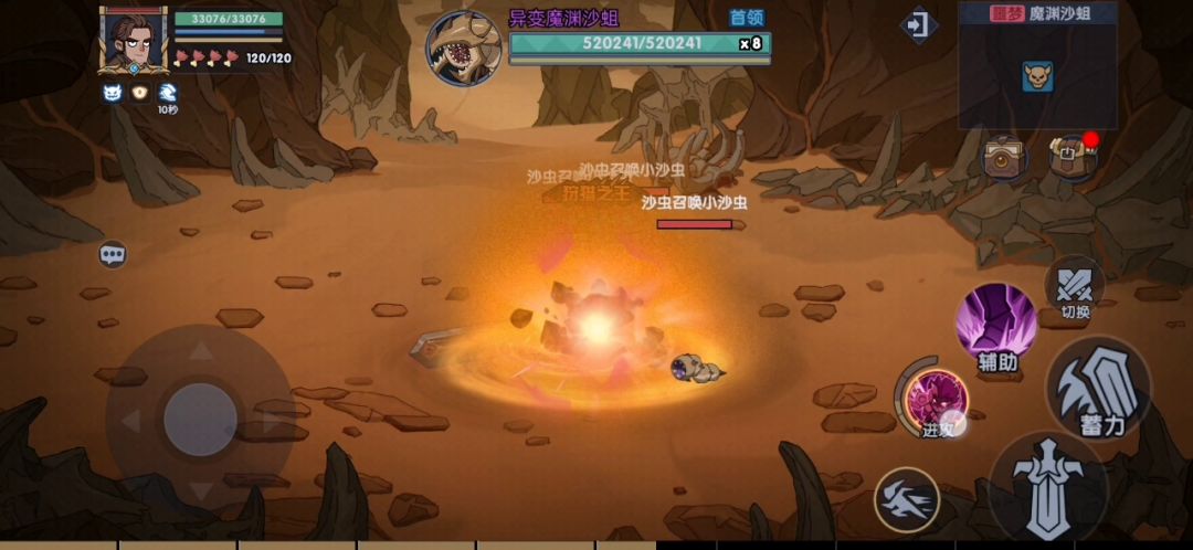操作稀碎。难顶 开局不打晕,晕了之后只会放风不放石然后化身为风只能等死。化风后自己连续撞掉石头才停下来,撞掉的石头就会变成土元素。不打掉土元素boss会吸收增加坦度。还有这流沙会打断技能且伤害不俗领域防不住。完美结局最终与boss双双赴死。这个boss我不复活确实是打不过的,可能能凹过但我总觉得没必要花这时间废这个劲