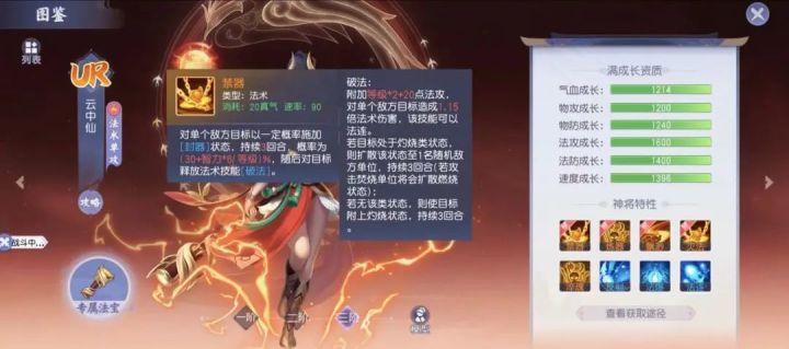 自从云中仙在仙界登场后,火系阵容重新焕发了活力。法术单攻神将云中仙究竟有什么样的力量,能够起到这么大的作用呢?今天就跟小四一起深入了解一下,这位仙界的传奇仙子吧~云中仙的技能功效云中仙的防御资质在法术单攻的神将中相对较低,但法攻成长属于第一梯队,同时速度成长在法系单攻中遥遥领先,搭配迅捷技能能够尽快打出技能效果。云中仙的[破法]攻击伤害倍率为1.15倍,若将其专属法宝[神火柱]升满级,将提升