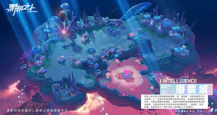 【关于「档案提取」】「档案提取」旨在为各位接触者披露《黑潮之上》世界的种种情报,包括人事档案、区域情报、背景调查、机密情报等;从活跃的人物、关卡地图,到强大的敌人,我们都将在此一一呈现。「海底城」现世从来不缺对深渊模样的猜想,但“海底城”无疑是最梦幻与浪漫的一个:坐落在无垠深暗中的现代都市,尖端技术铸造的庇护所、闪烁在黑暗中的霓虹、充满科技感的高楼睥睨着四周凶险的魔物,交错的光影间不时传来悠