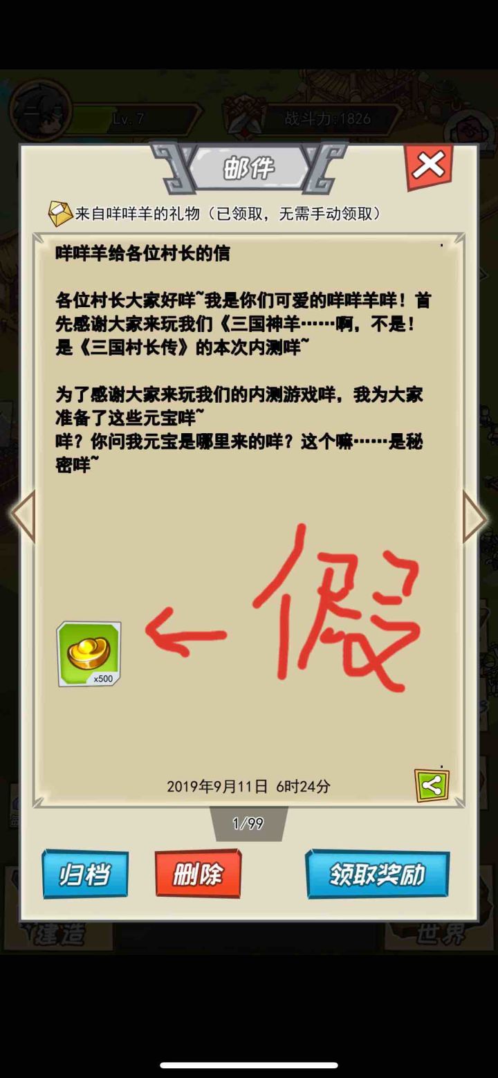 大家早,今天停机维护已经结束了,今日的元宝500元包已经发到各位账号上,邮箱里那个通知邮件是测试用的并没有什么领取功能(就是一张图别点了)。另外请大家告诉我一下点击建筑乱闪的情况是不是有好转了,没有我们继续调整。祝大家游戏愉快!苦逼策划小黄