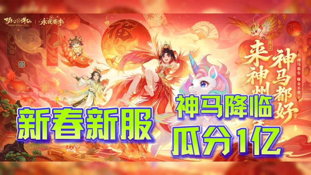 #梦幻新诛仙神马都好 全新版本 万人大服<69神马服>欢天喜地迎新年中~ 现在登录!参与「骑待重逢」活动,即有机会免费获得限定趣味坐骑·加马! 这可不是一匹普通的小马,骑上它,好运“加马”、财运“加马”、颜值“加马”……更有隐藏款财神小马璀璨登场,浑身金光闪闪,助你马上发财、好运满满! #梦幻新诛仙 #修仙第一步就是扎马步 #梦幻新诛仙马步摇 #梦幻新诛仙永夜赛季