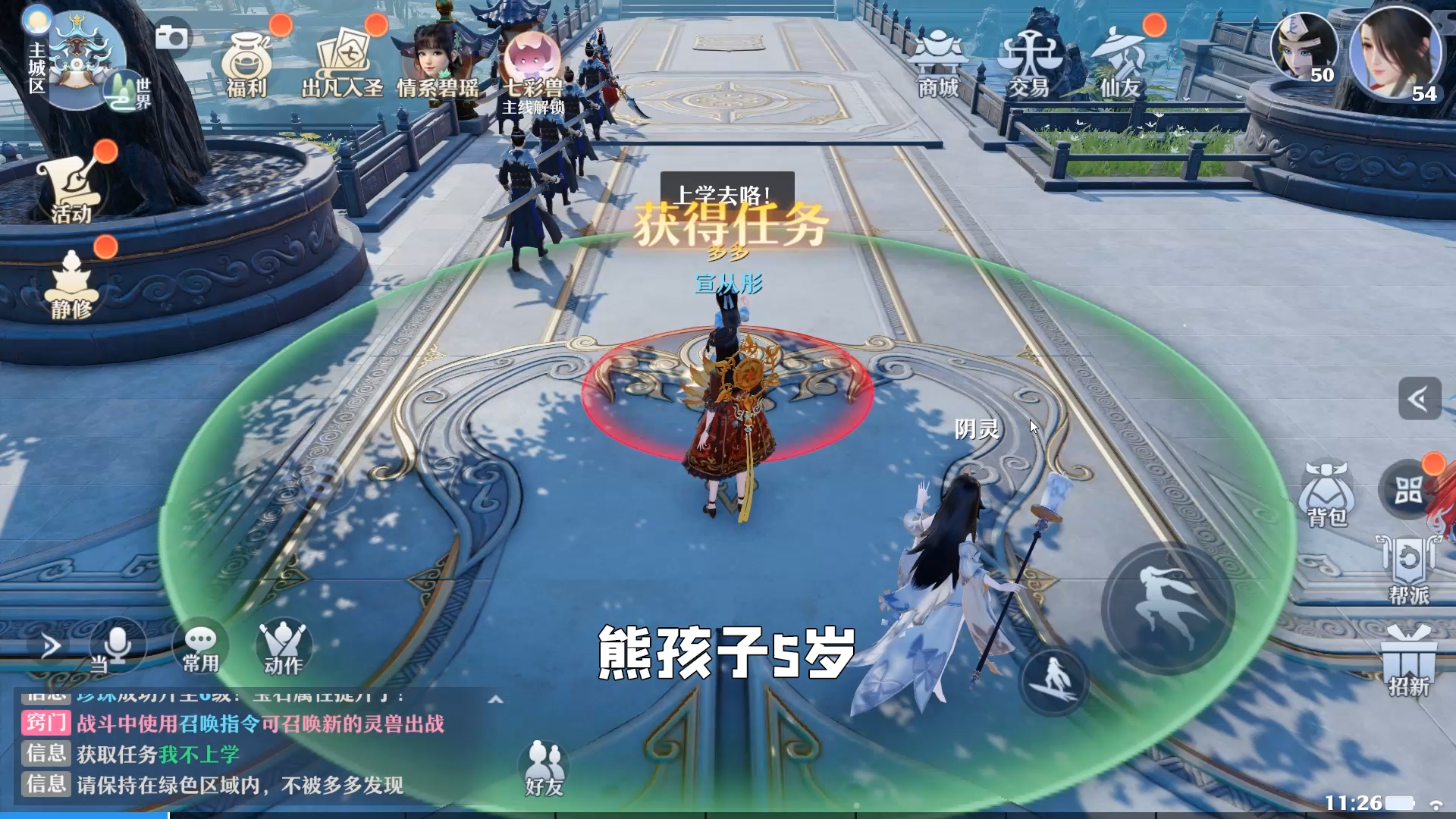 梦幻新诛仙:送熊孩子去上学真累,不仅要保护好他,还要捉独角仙