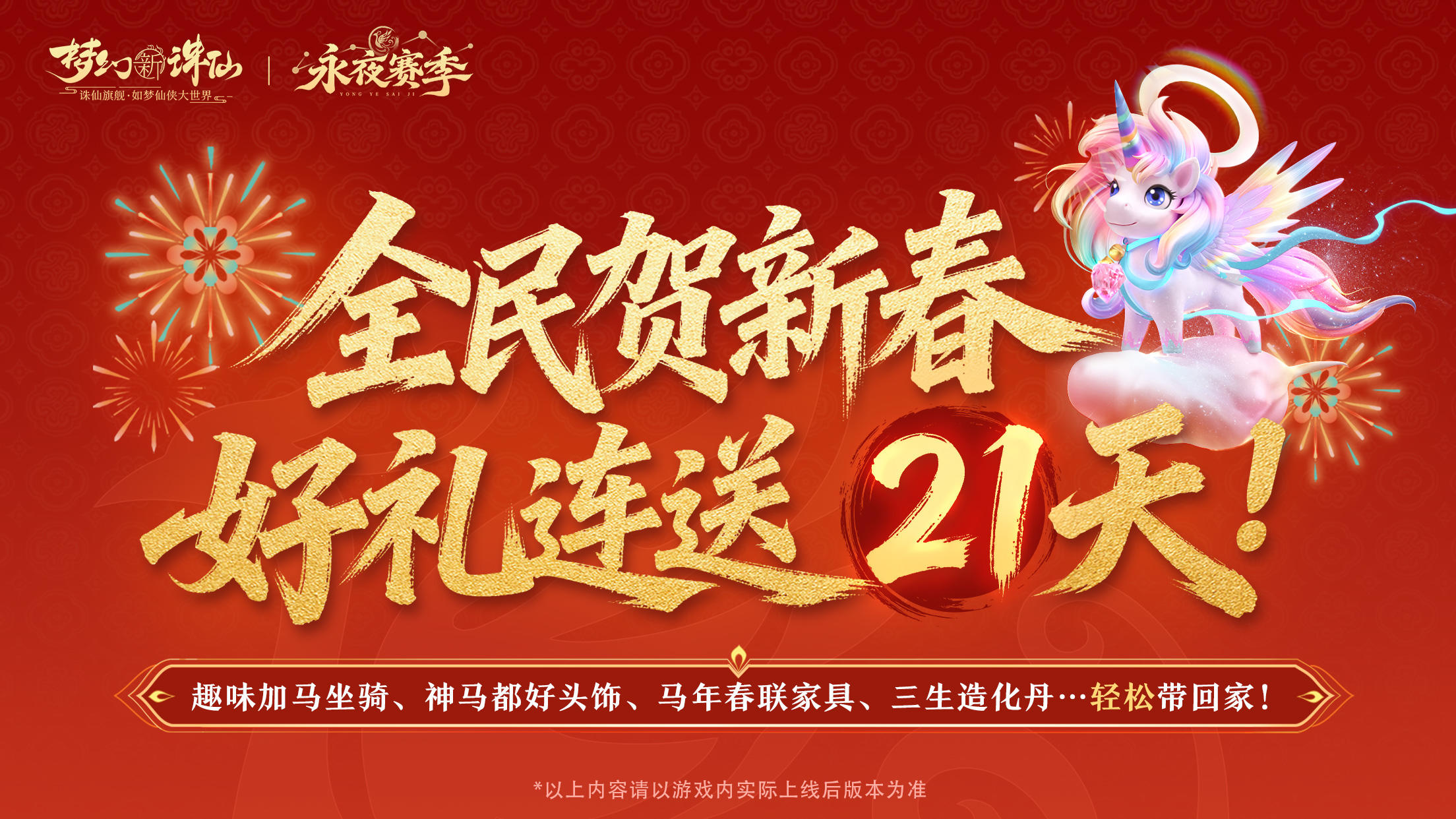 #梦幻新诛仙神马都好 全新版本 万人大服<69神马服>欢天喜地迎新年中~ 现在登录!参与「骑待重逢」活动,即有机会免费获得限定趣味坐骑·加马! 这可不是一匹普通的小马,骑上它,好运“加马”、财运“加马”、颜值“加马”……更有隐藏款财神小马璀璨登场,浑身金光闪闪,助你马上发财、好运满满! #梦幻新诛仙 #修仙第一步就是扎马步 #梦幻新诛仙马步摇 #梦幻新诛仙永夜赛季