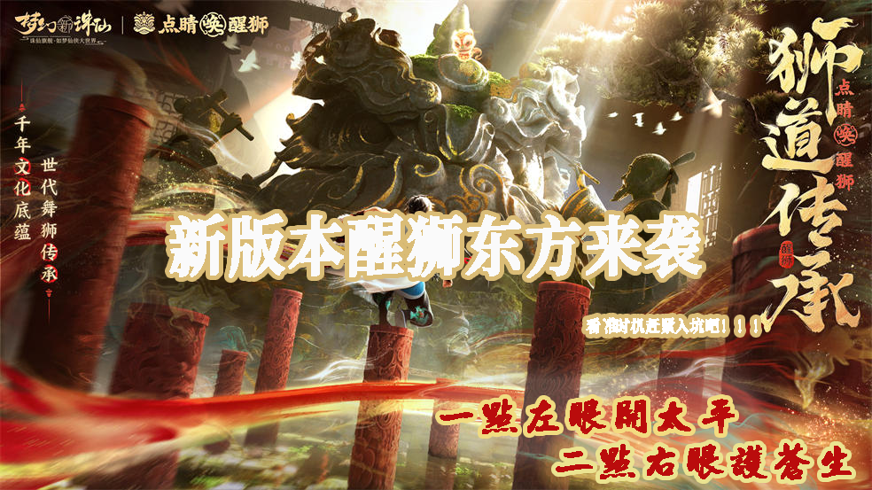 少年当自强,点睛唤醒狮!这次《梦幻新诛仙》跟广东醒狮文化进行了联动,共同打造了一个醒狮主题的版本。#梦幻新诛仙醒狮创作征集令#梦幻新诛仙#游戏安利#游戏推荐#攻略#游戏讨论