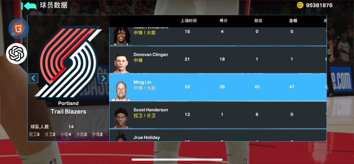 中锋还好吧,要是会玩的话,我场场三双,已经连续三个赛季场均50分了