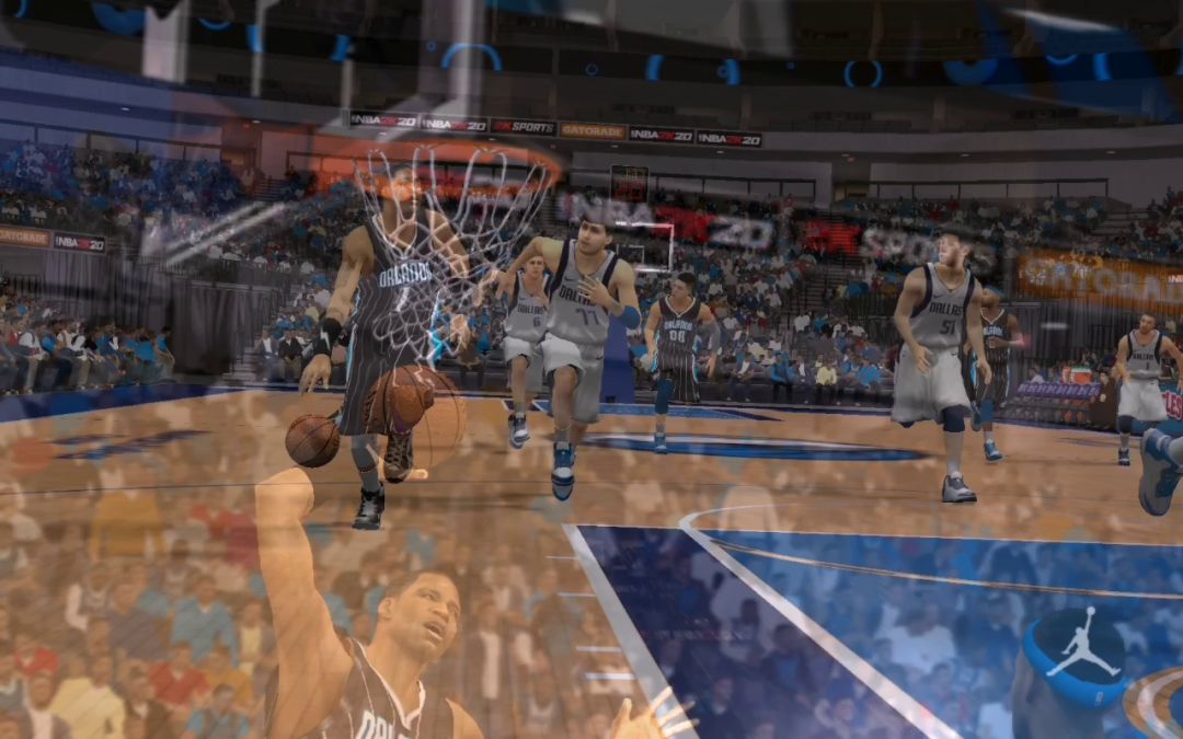 朴实无华吧。。。我记得扣完后还吊了一下,可惜回放镜头不全。(第一个扣篮) 这次我没装篮下大力扣篮包,只装了灵活型侧身战斧。