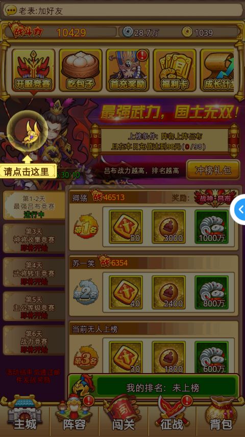 新手FAQ1、游戏加载过程中,系统卡住,进不去,怎么办?答:建议重新刷新下页面进入,如果刷新页面后依然无法进入,请清楚缓存后再尝试进入。2、甄姬是怎么得来的呢?答: 甄姬是玩家创建角色后,在登陆游戏的24小时后可以领取。3、每天应该做什么呢?答:可以有很多,在这里推荐几个给各位玩家:每日签到,斩将塔爬塔和巡逻,强化装备,招募武将,培养武将,完成每日任务,竞技场挑战,夺旗,试练等。4、各个防御
