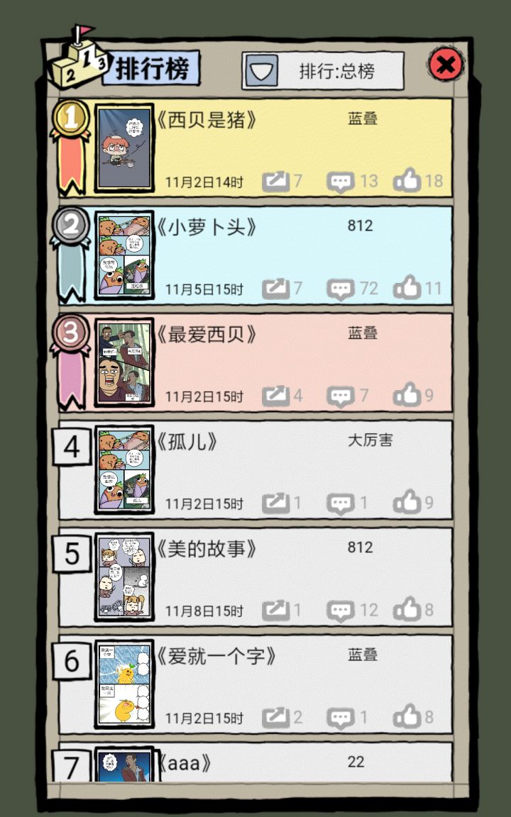 刚开始的动画播放速度太快了,如果由自己操控会更好。还有就是刚来始没有拿到一手好牌,怎么搭配都是怪怪的,赚钱很慢。而且怪和好的标准该怎么定义呢?可能我觉得还不错的搭配,却会被评价说很怪,到底是哪个小机灵鬼在评判我的点子?!雇佣来的漫画家都成为了我的奴隶,其实很好奇他们到底画了什么玩意,如果可以把玩家自己diy的或者你们自己制作的小短漫换上去给玩家自由查看的话,也许会不错。还有还有,diy的素材太少又太怪,只能做搞笑漫画,如果可以正经一点就好了,呃,如果真的能制作后下载下来也不错,我是说,真的具备一个制作漫画的工具功能。不过这个要求有点太高了……暂时是这样。