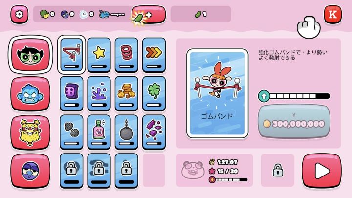 看到飞天小女警IP的游戏,第一时间就是先充为敬~游戏是个横版跑酷,还是熟悉的画风,流畅度非常好。超赞的类跑酷游戏,经典IP加上解压玩法,我冲了!游戏中,角色出发是用弹射起步的方式,拉动皮筋弹出角色。然后你就不能主观控制角色的落点了,有点类似于FC上面马戏团跳球的那一关。随着落地次数的不断增加,角色弹跳力度会越来越小,直到游戏结束。当然,为了让你弹得更远,游戏设置了一个主动技能。在你角色快要力尽而