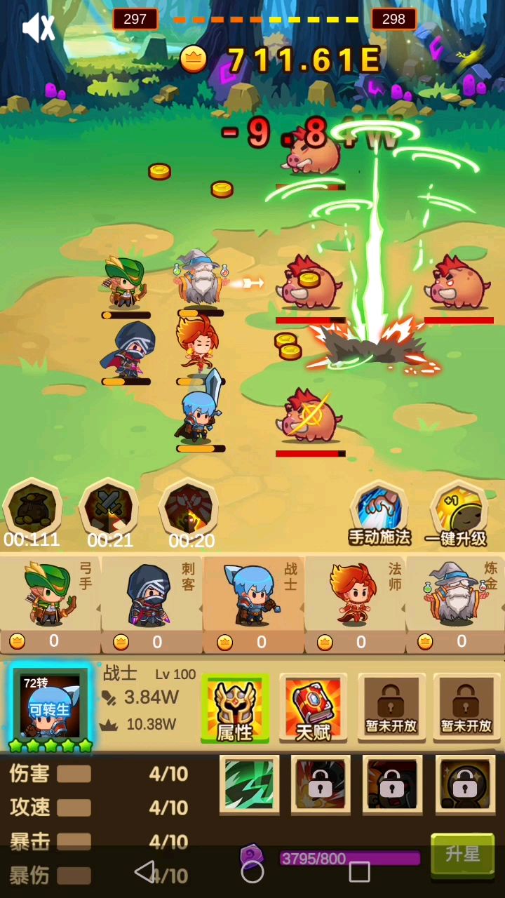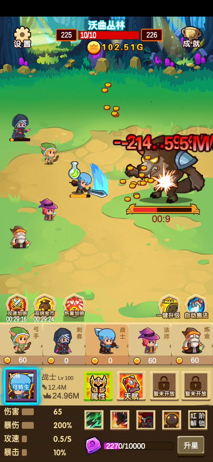 进入游戏然后使用金币。攻速。暴击三个状态,可以无限刷新状态,无冷却,快速刷金币