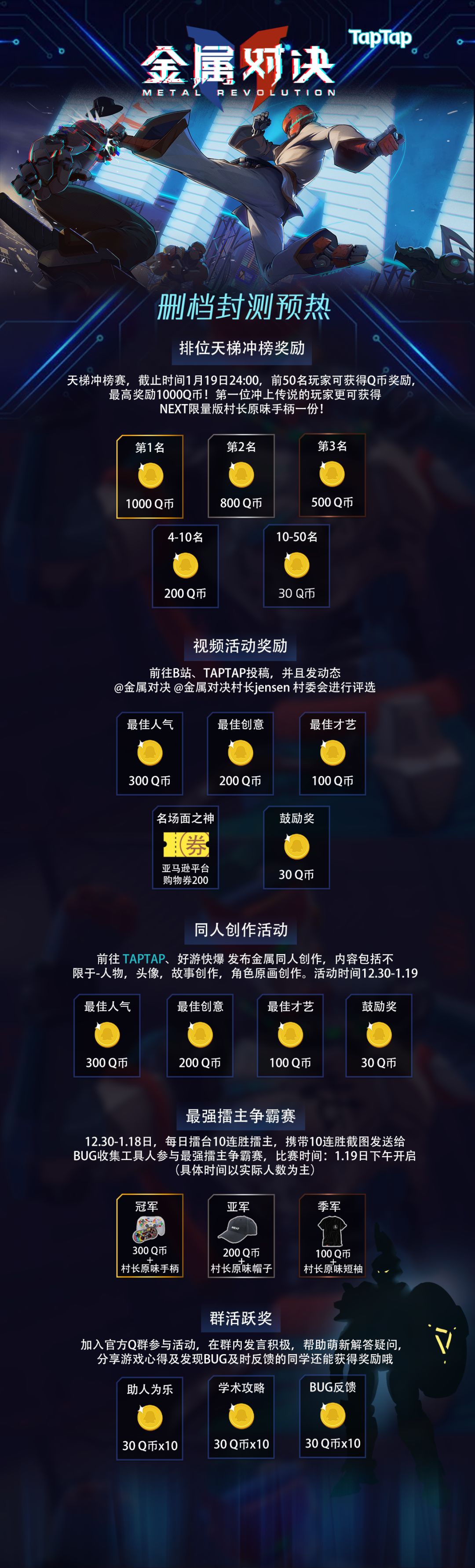 Hello,大家晚上好呀!! 最近收到不少私信说,我们一直这么鸽,年前还能不能玩到了 今天我以村长的名义告诉大家!! 玩!快来玩! 年前测试,错过就得等到明年啦!! 本次测试为安卓删档测试,测试将从12月30日持续至明年1月19日 让大家从今年玩到明年,完美地从2019年过渡到2020年! 当然,为了让大家玩得更爽,我们还准备了大批福利给大家~~ 福利一:排位天梯冲榜大作战! 天梯冲榜赛,截止时间