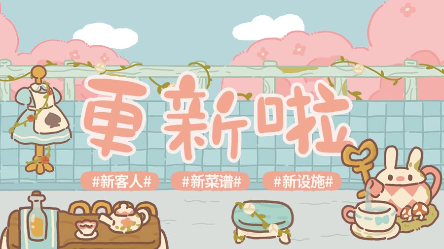 1、新增2位客人 立春已经过去了,餐厅迎来了2023年的第一批新客人,本次新增树袋鼠和蝴蝶犬2位客人,不知道他们爱吃些什么呢?本大厨得好好准备准备~ 2、新增2道菜谱 春节期间,本大厨可没闲着。研发出了两道新菜品“三鲜豆皮”、“奶油南瓜汤”,欢迎客人们前来品尝! 3、新设施、新壁纸 本次更新了露台的爱丽丝系列设施和露台梦幻蓝壁纸,马上就要到情人节了,快快把露台装饰起来,营造浪漫的约会氛围吧~